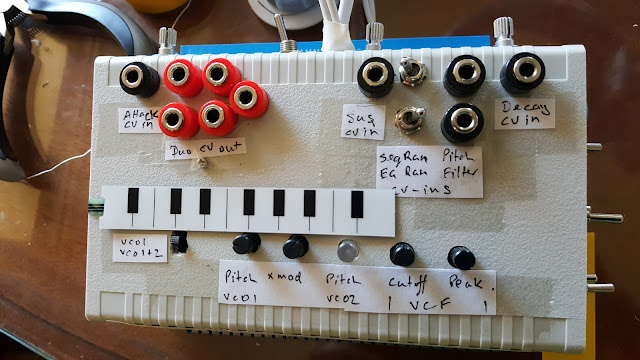 I'm using just 2 control inputs in this prototype: CV in for the main VCO's pitch & the filter.