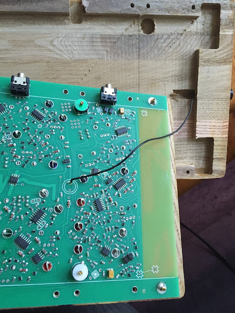 It is very easy on the PB2 to unscrew all the front screws and then just pop out the front section and PCB from the base to reveal the board in all its glory. If you look at the picture here you can see that the soldering looks fine on the Jack I'm pointing to - Nope, actually there is no electrical connection. The reality is I had at least 8 (yes EIGHT !!) jacks that were not connecting properly thru to the PCB ring around each hole. Presumably a cold or cracked joint?